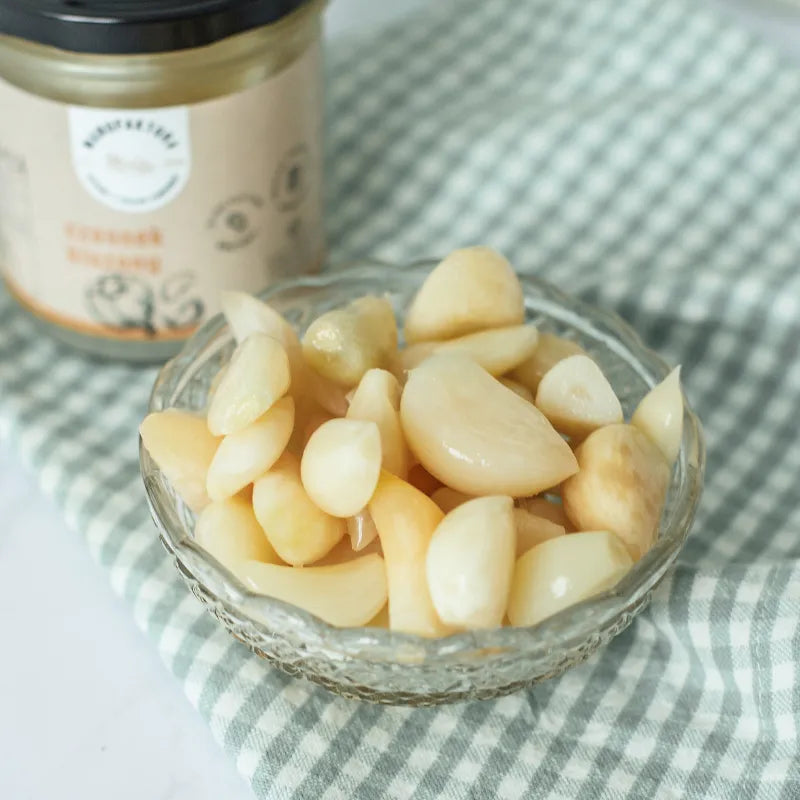 Czosnek kiszony naturalnie w beczce. Produkt niepasteryzowany.