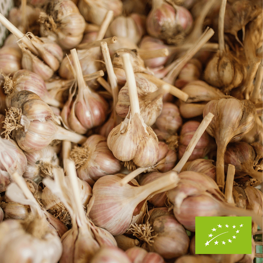 Czosnek średni pochodzi z uprawy ekologicznej. Jest sprzedawany w zestawie trzech sztuk.